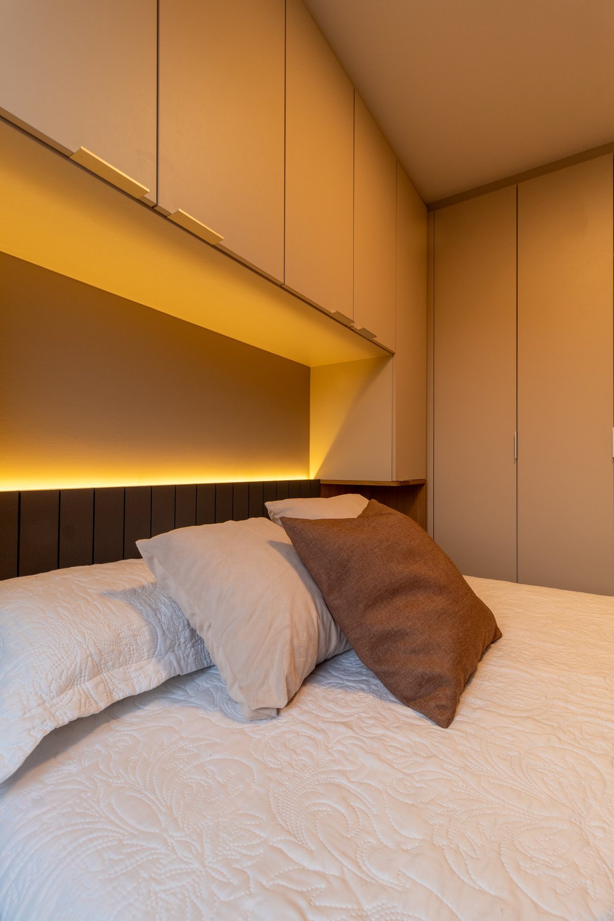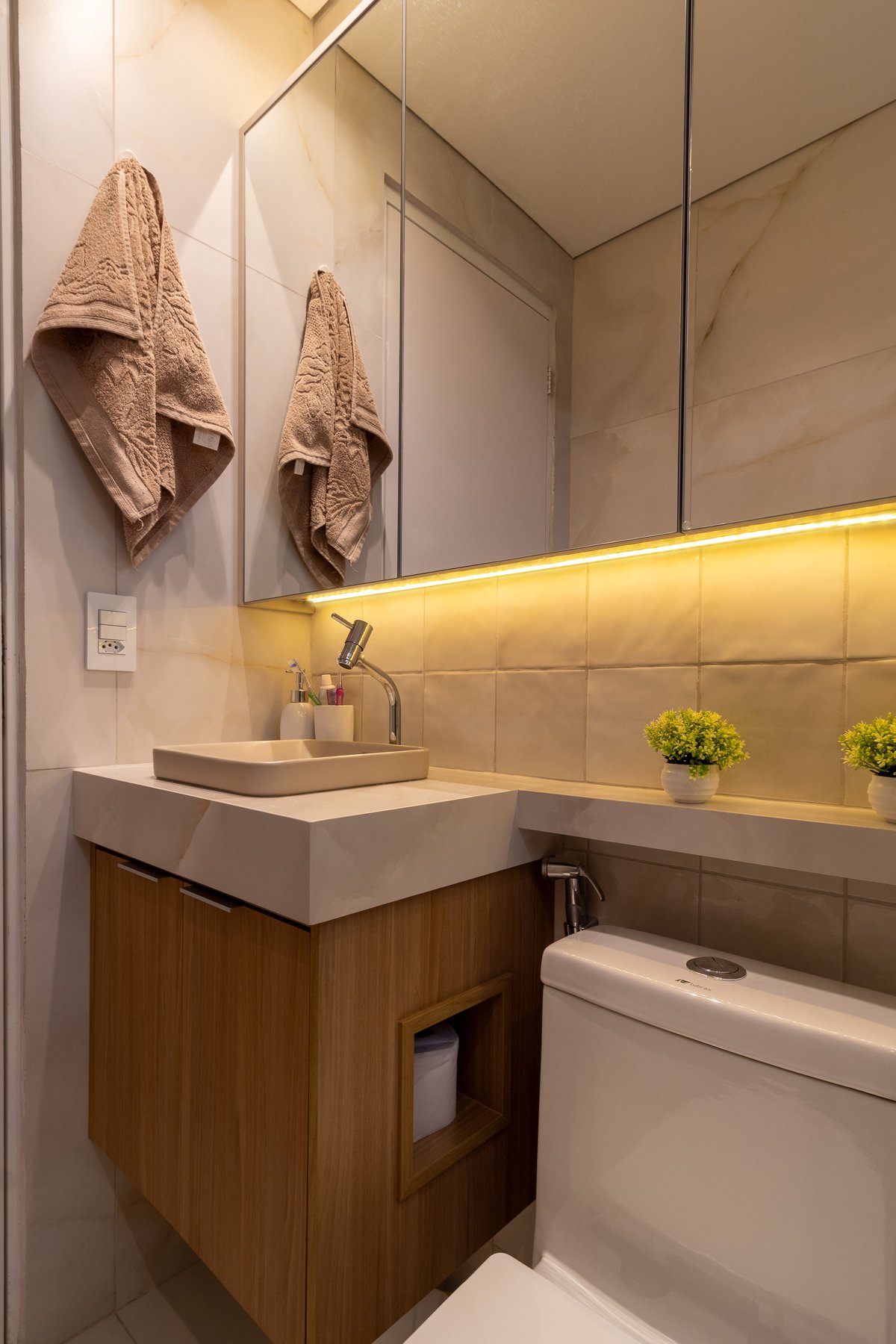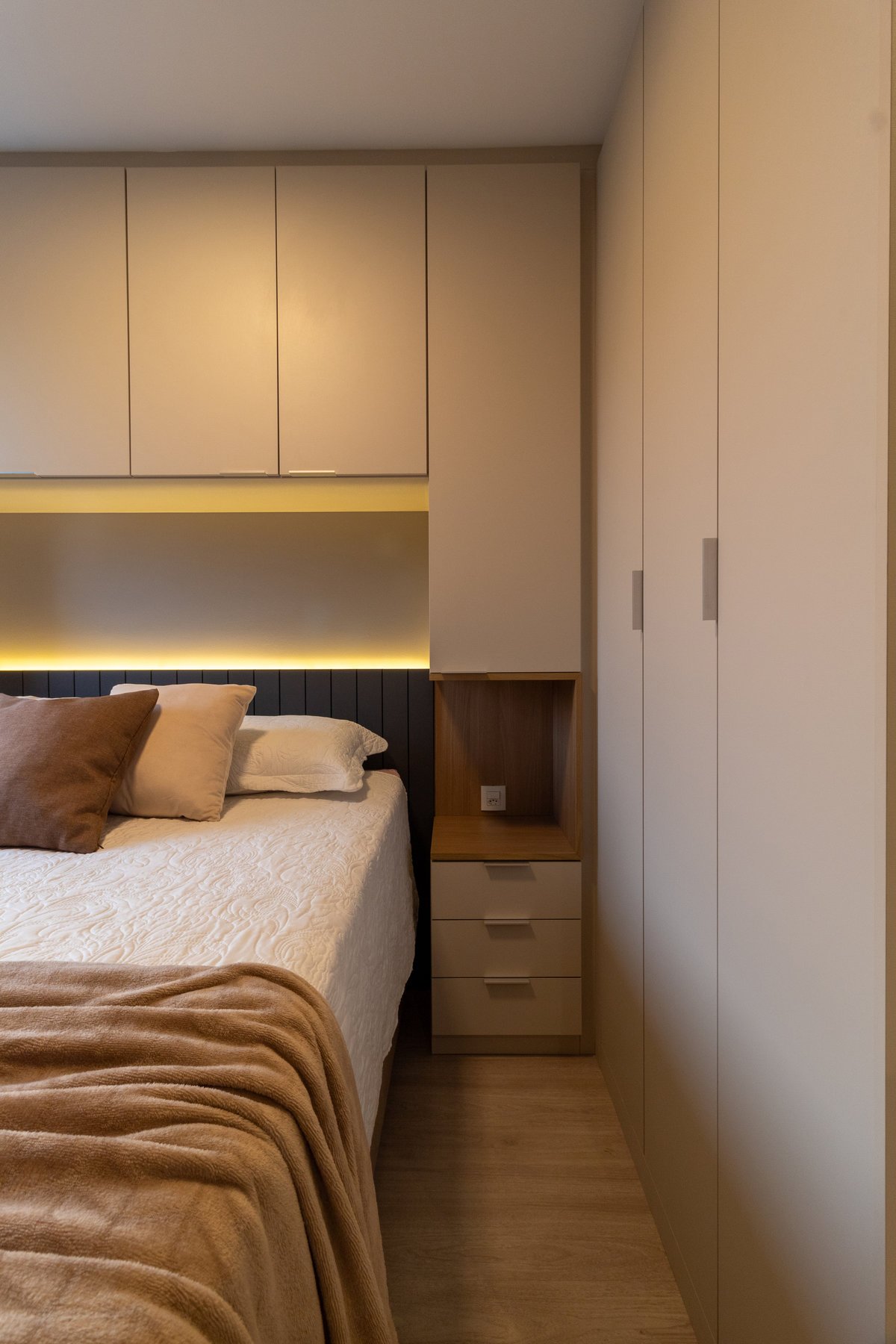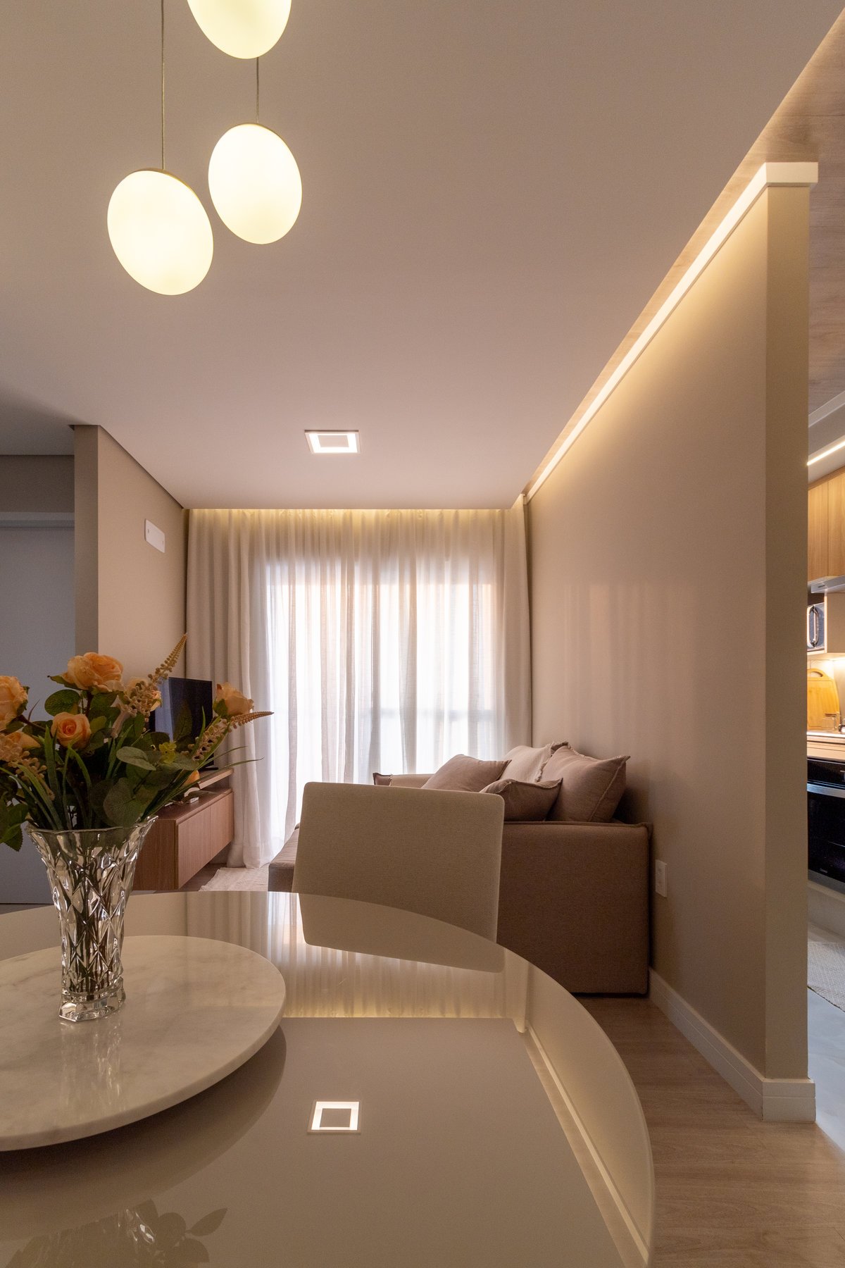 De um medo à superação, nasce o Apê 135, o primeiro lar do casal Bruna e Thiago. Desde o início, uma frase guiou o projeto: “Arquiteto, quero tudo branco”. O desejo por um espaço clean foi entendido, mas o objetivo era criar um lar com personalidade. A escolha e a aplicação estratégica da madeira trouxeram aconchego aos ambientes e, o medo de arriscar, foi superado pelo uso de cores delicadas, tornando este espaço um cenário memorável para o começo da história da família.