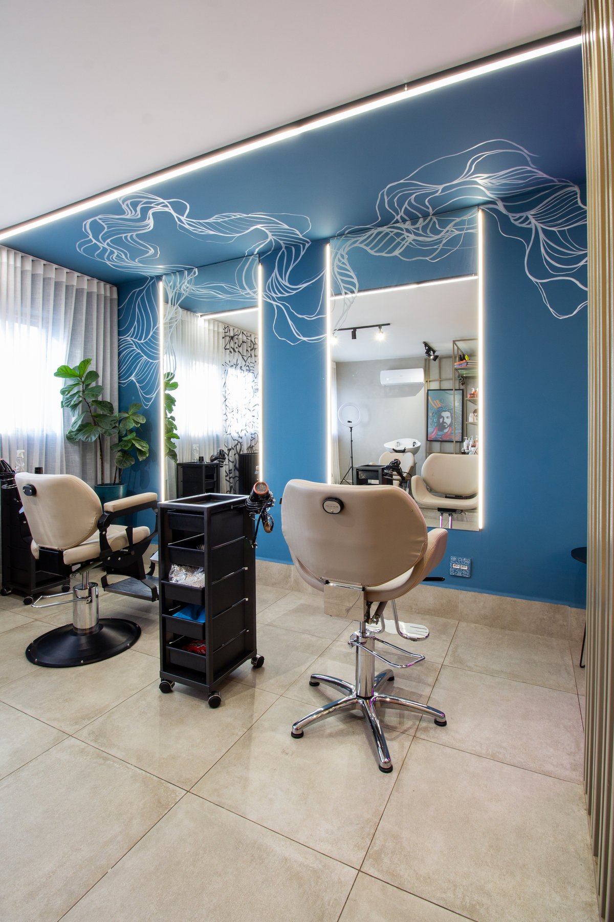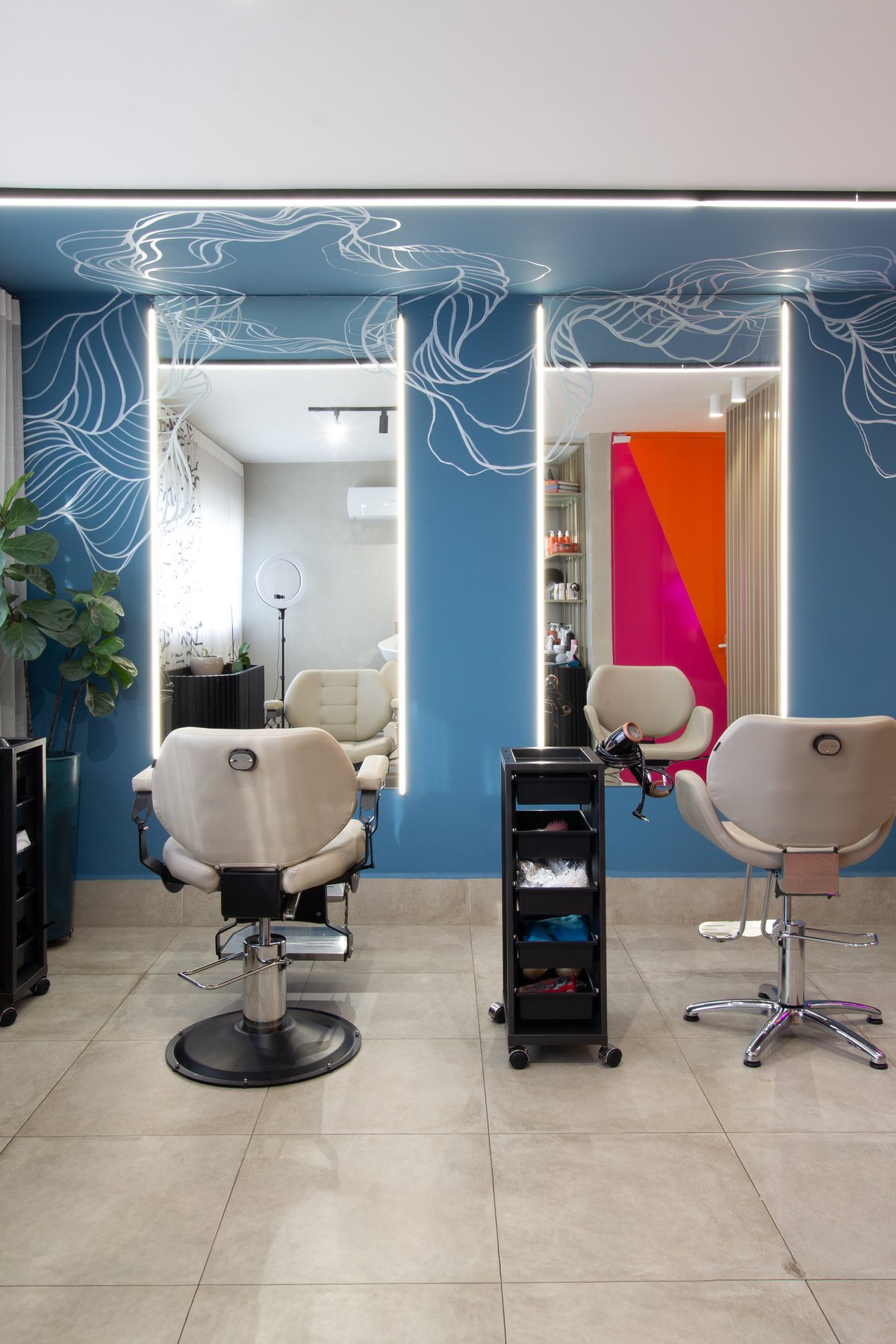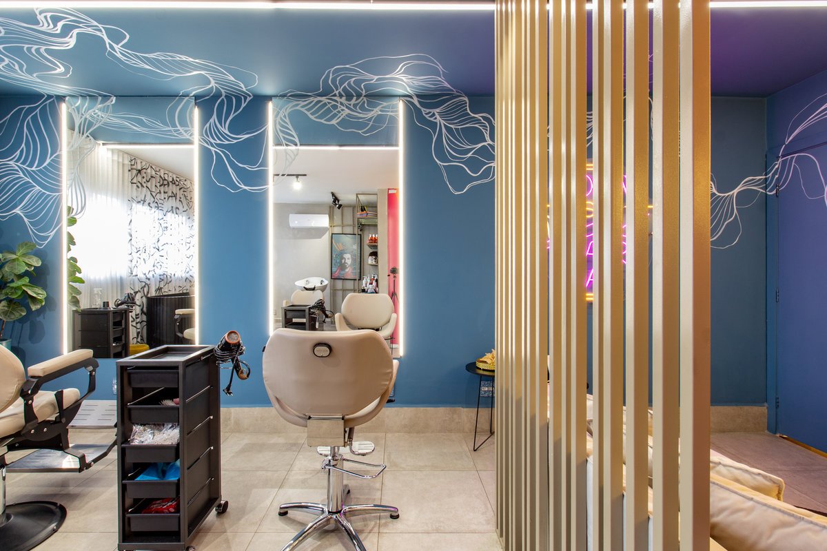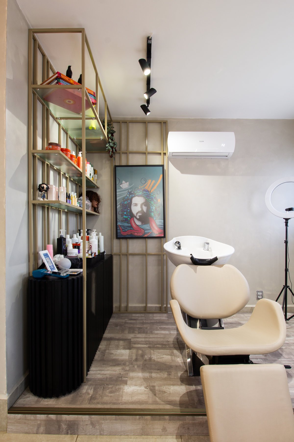 Um espaço que vai além da função e entrega uma experiência: este é o Studio Encaraconando. Inspirados em referências acumuladas ao longo dos últimos dez anos, traduzimos todo o acervo do cliente em um ambiente que mescla elementos do pop art, do “sereismo” e, sobretudo, das curvaturas de um cabelo cacheado. Assim como os cachos simbolizam confiança e identidade, este projeto reflete a essência de que autenticidade é força e beleza.