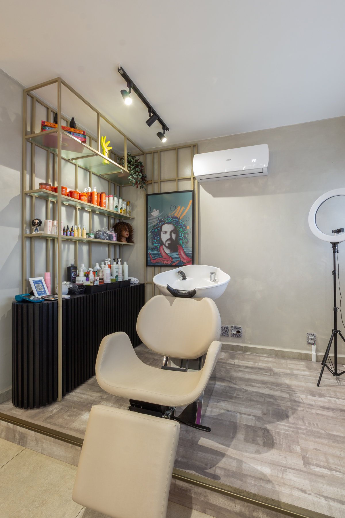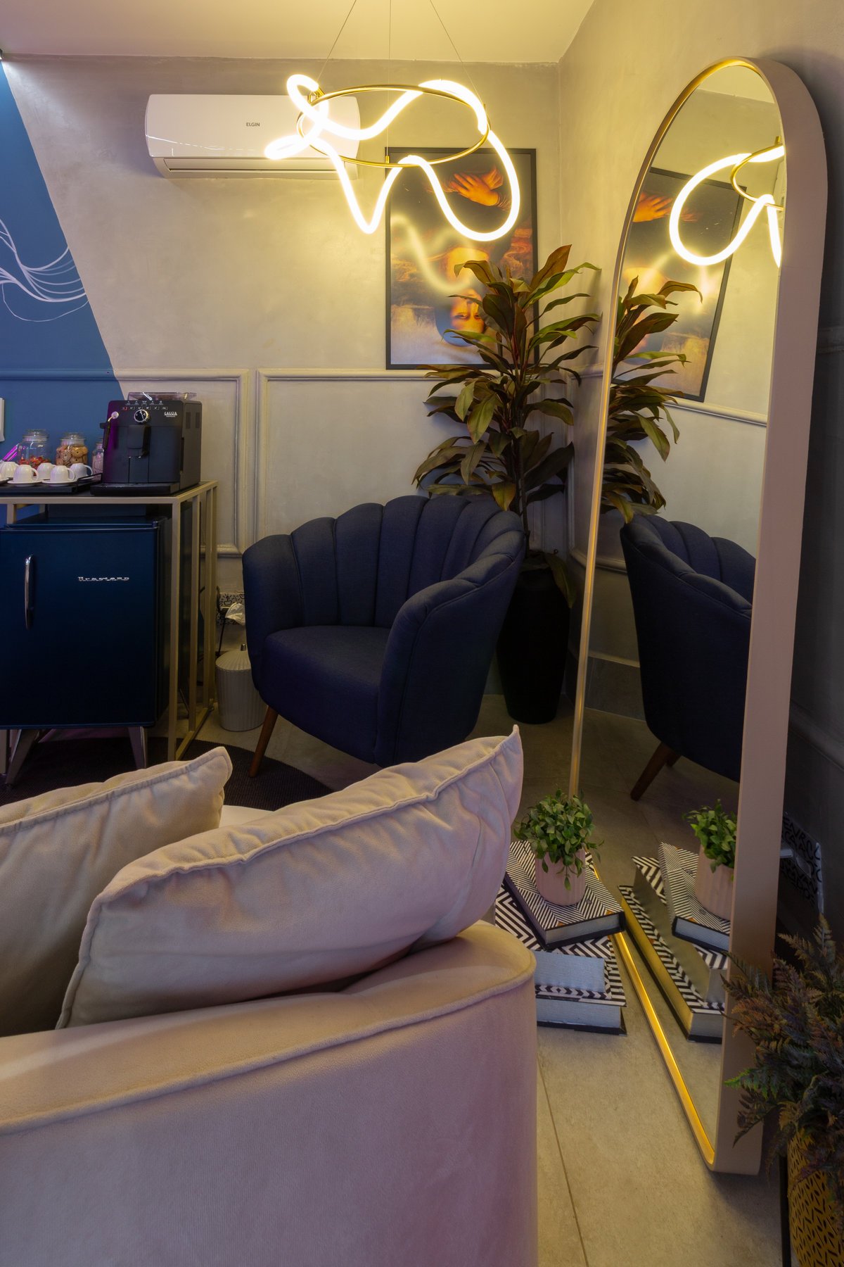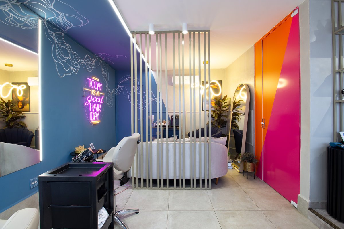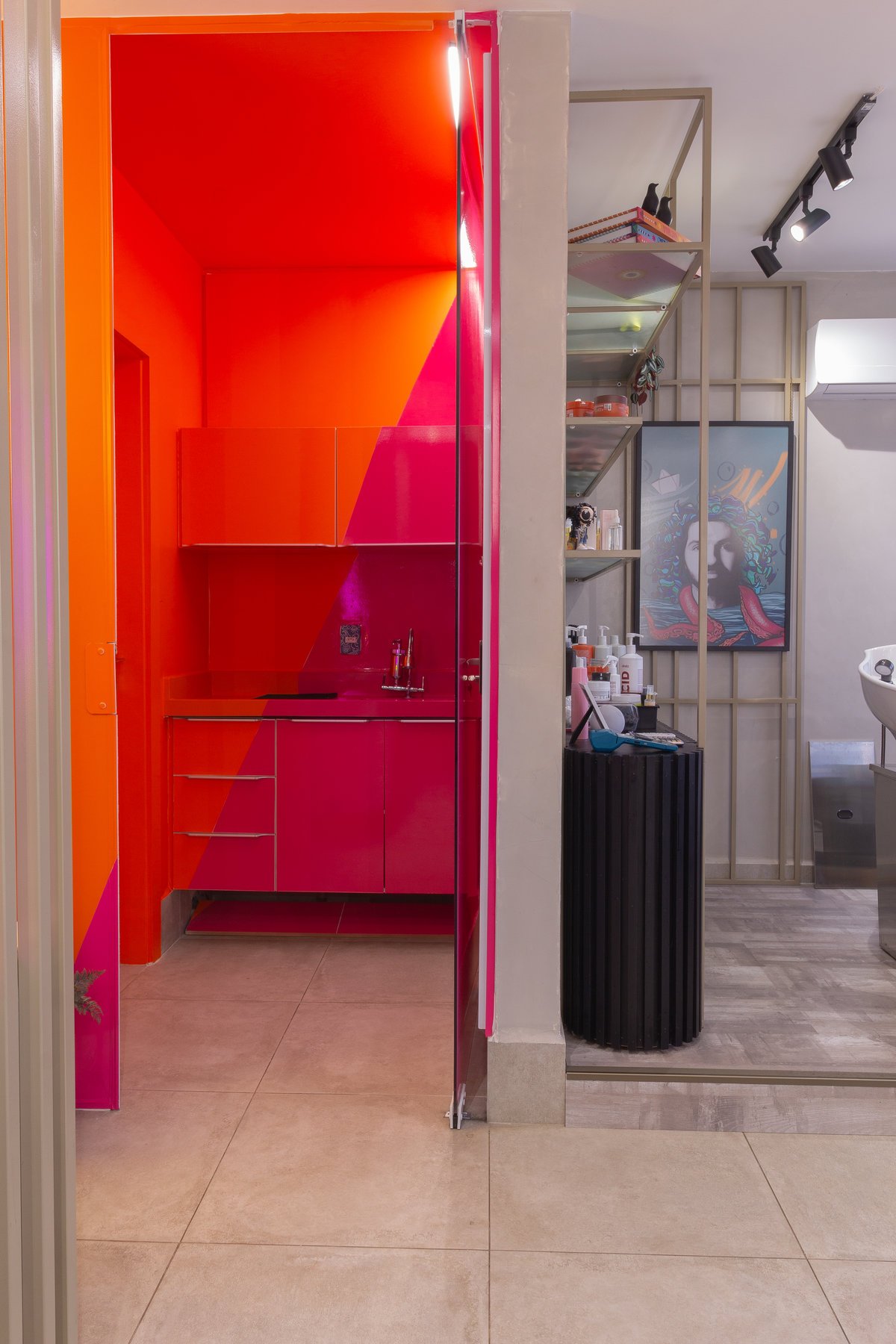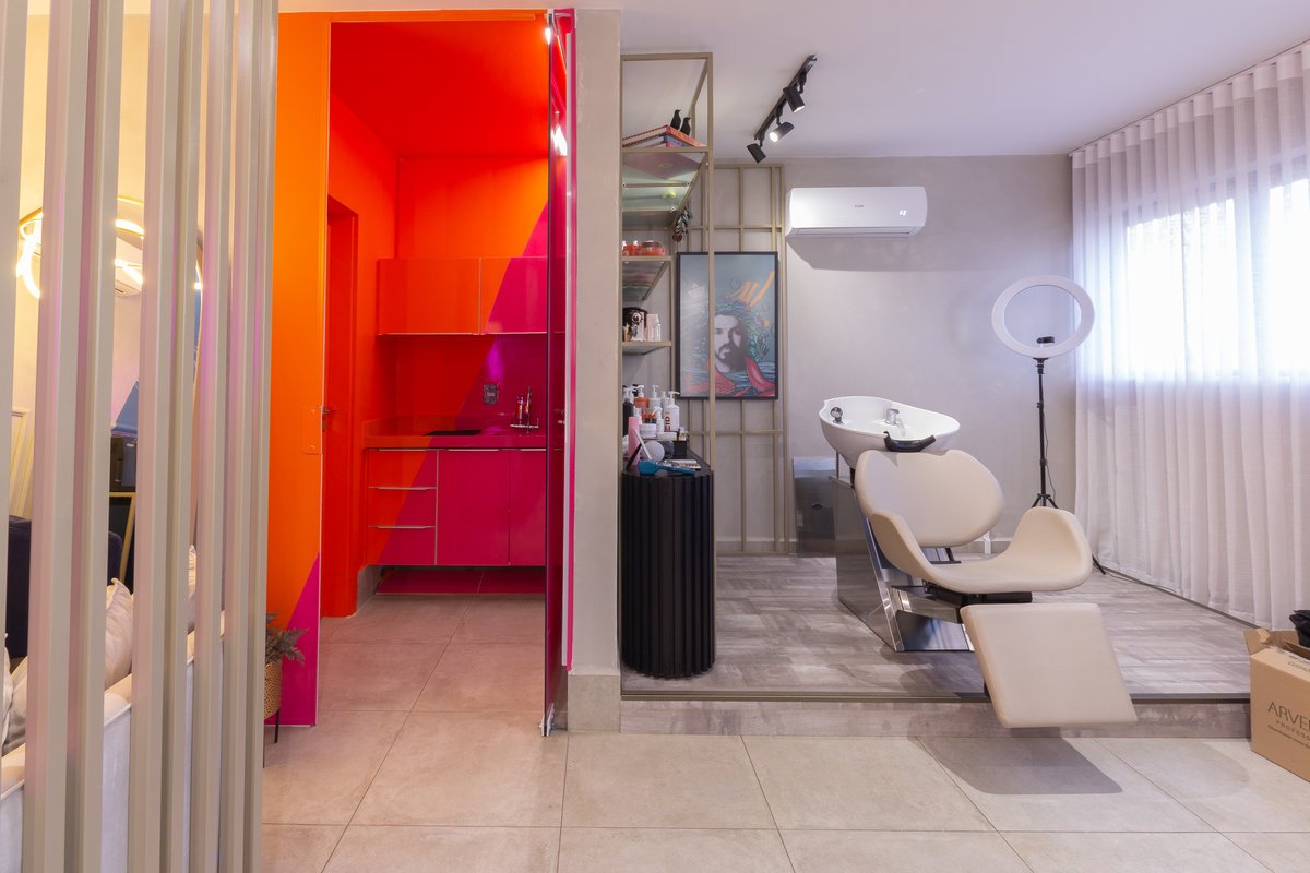 Um espaço que vai além da função e entrega uma experiência: este é o Studio Encaraconando. Inspirados em referências acumuladas ao longo dos últimos dez anos, traduzimos todo o acervo do cliente em um ambiente que mescla elementos do pop art, do “sereismo” e, sobretudo, das curvaturas de um cabelo cacheado. Assim como os cachos simbolizam confiança e identidade, este projeto reflete a essência de que autenticidade é força e beleza.