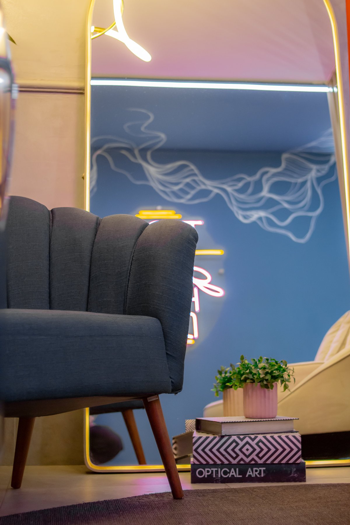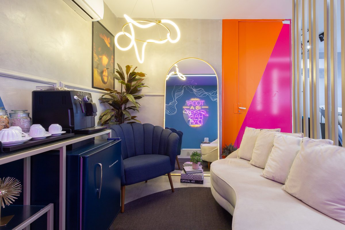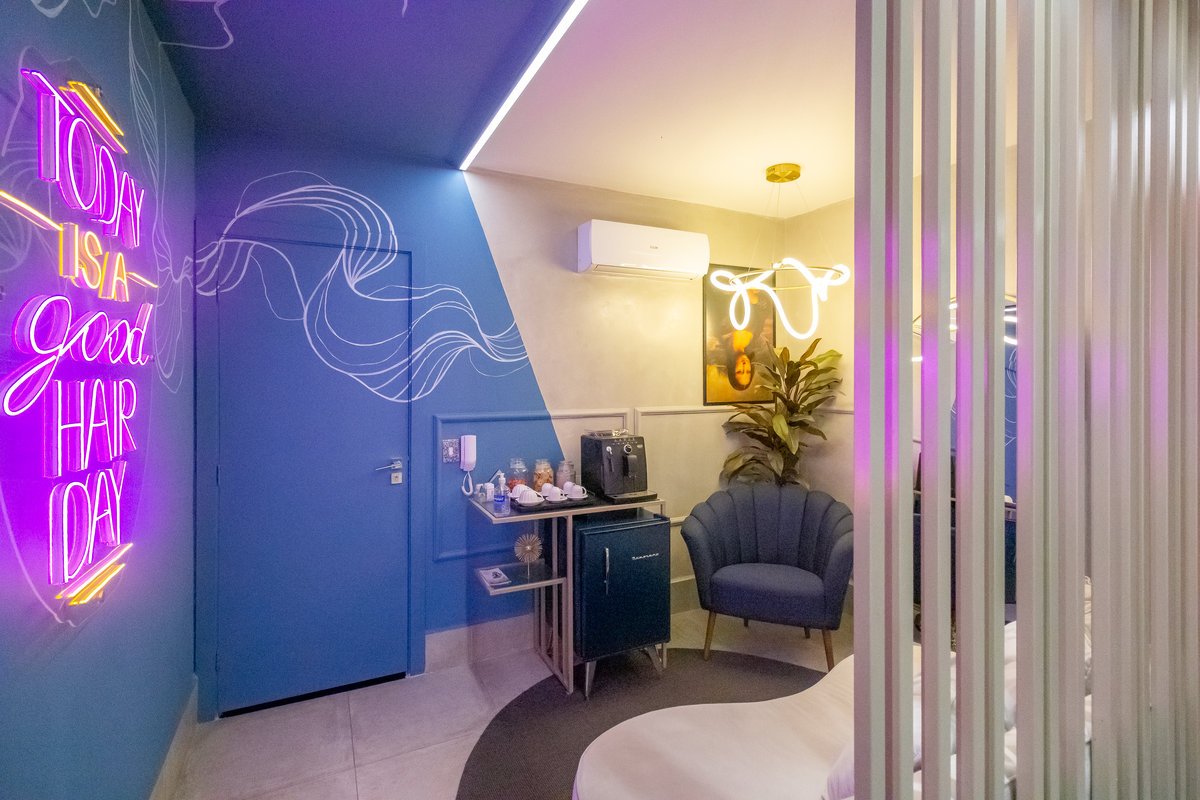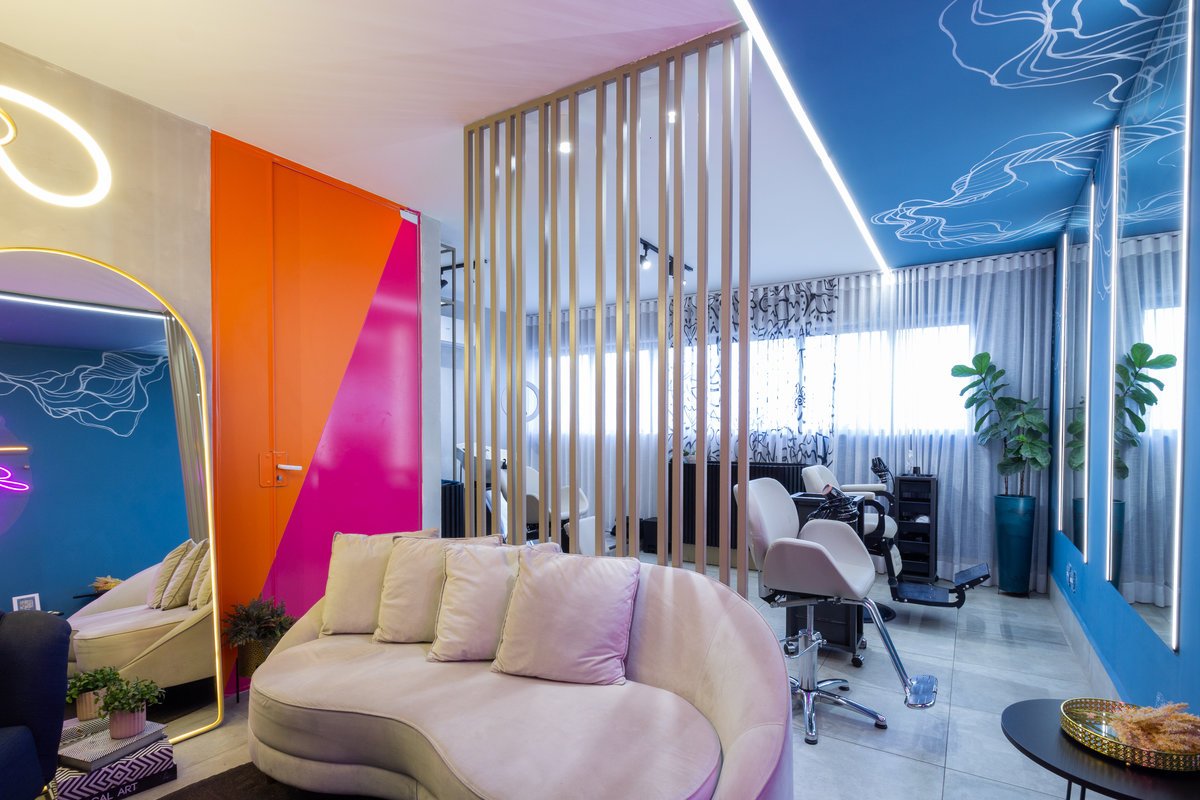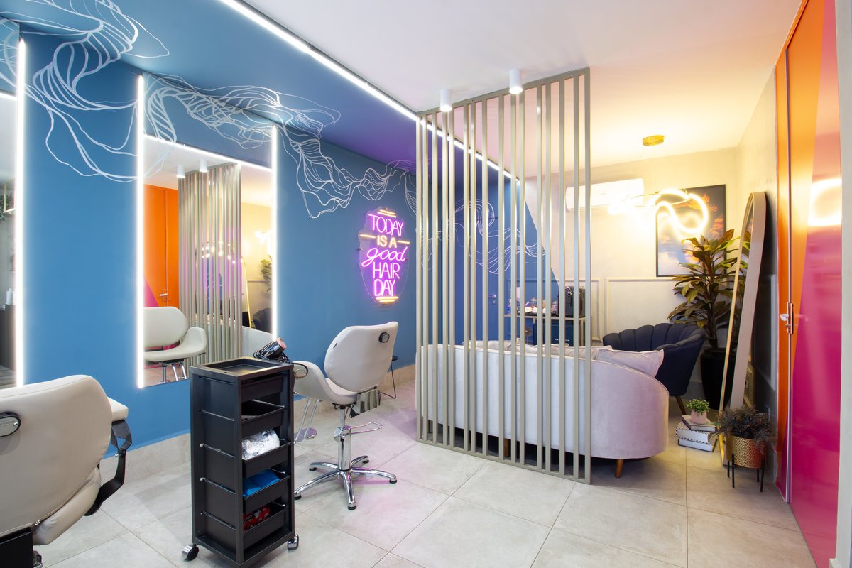 Um espaço que vai além da função e entrega uma experiência: este é o Studio Encaraconando. Inspirados em referências acumuladas ao longo dos últimos dez anos, traduzimos todo o acervo do cliente em um ambiente que mescla elementos do pop art, do “sereismo” e, sobretudo, das curvaturas de um cabelo cacheado. Assim como os cachos simbolizam confiança e identidade, este projeto reflete a essência de que autenticidade é força e beleza.